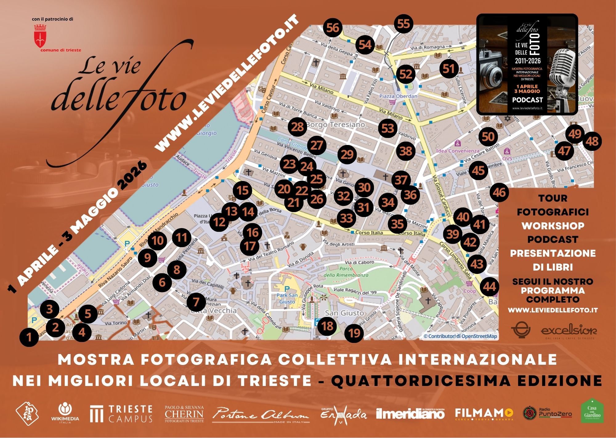 Le Vie delle Foto è una mostra fotografica collettiva e un festival di fotografia unico nel suo genere, che trasforma Trieste in una vera e propria galleria d’arte a cielo aperto. Per un intero mese, il cuore della città si anima grazie a un percorso diffuso di mostre personali ospitate all’interno di caffè storici, botteghe, ristoranti, gallerie e luoghi simbolici del centro.
